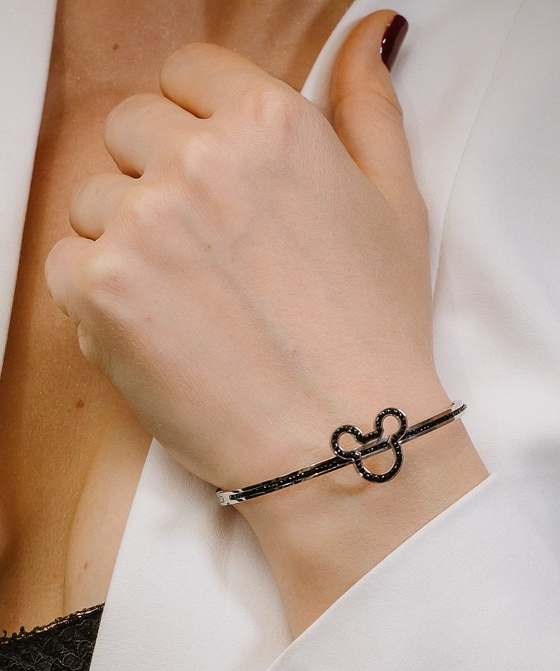 צמיד מיקי מאוס משובץ זירקונים שחורים עשוי Stainless Steel לאישה. הצמיד משובץ בזירקוני AAAA בחיתוך יהלום. המוצר מגיע באריזת מתנה ממותגת ומהודרת! חצי שנה אחריות.