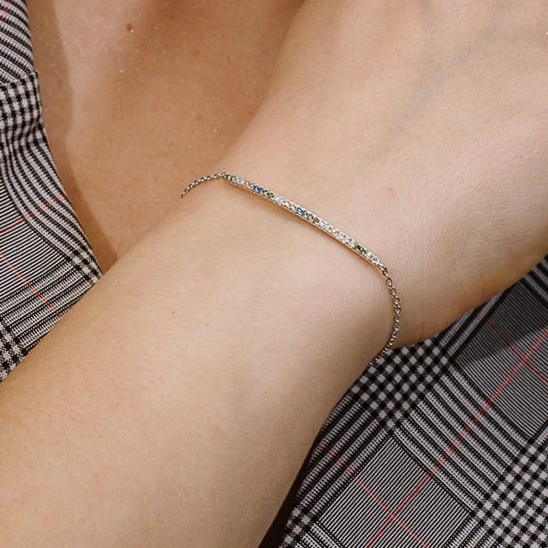 צמיד שורה שיבוץ צבעוני משובץ בזירקונים צבעוניים מכסף 925 טהור לאישה. הצמיד משובץ בזירקוני AAAA בחיתוך יהלום. מצופה ברודיום להגנה מפני התחמצנות ושריטות. המוצר מגיע באריזת מתנה ממותגת ומהודרת! חצי שנה אחריות.