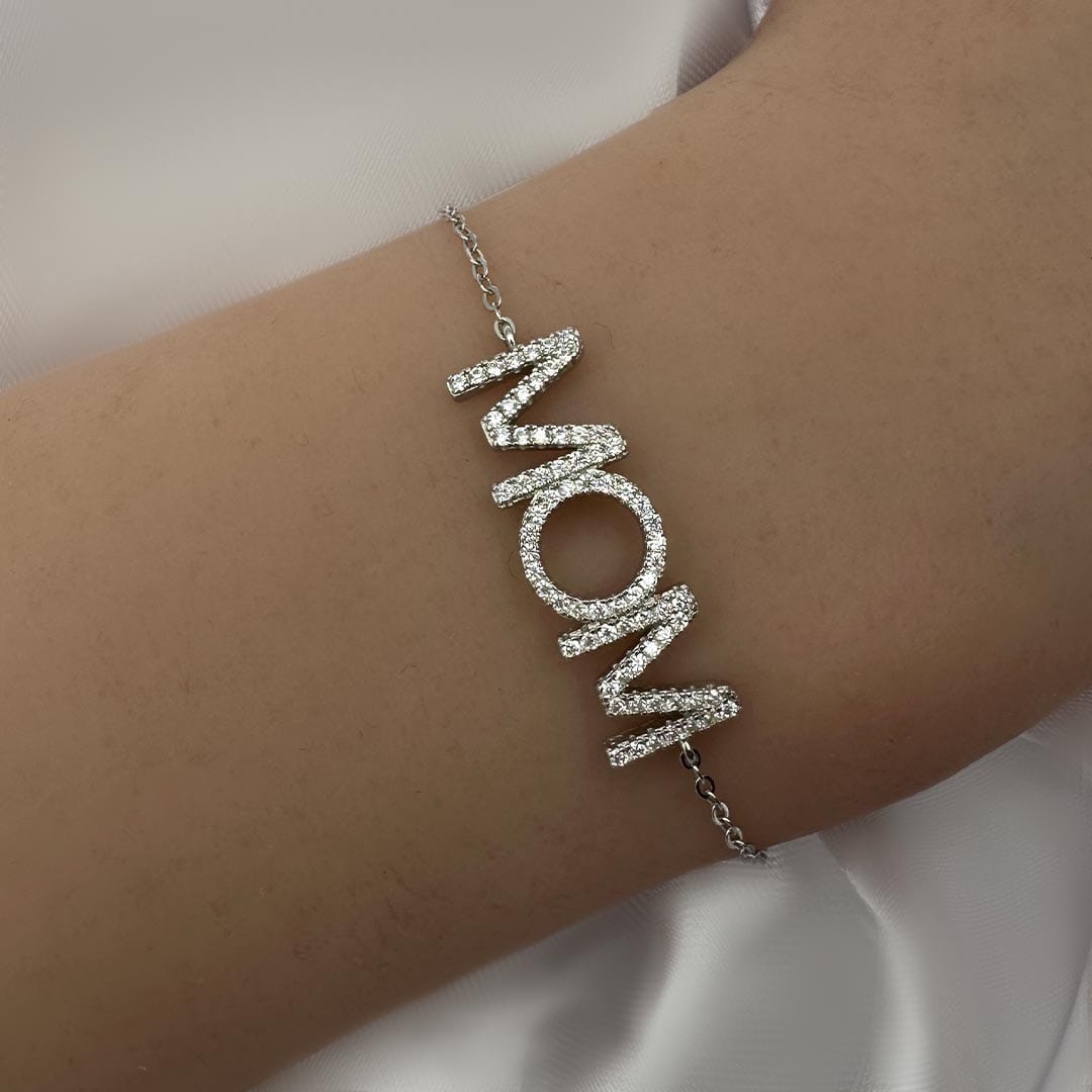 צמיד MOM משובץ בזירקונים מכסף 925 טהור לאישה. הצמיד משובץ בזירקוני AAAA בחיתוך יהלום. מצופה ברודיום להגנה מפני התחמצנות ושריטות. המוצר מגיע באריזת מתנה ממותגת ומהודרת! חצי שנה אחריות.