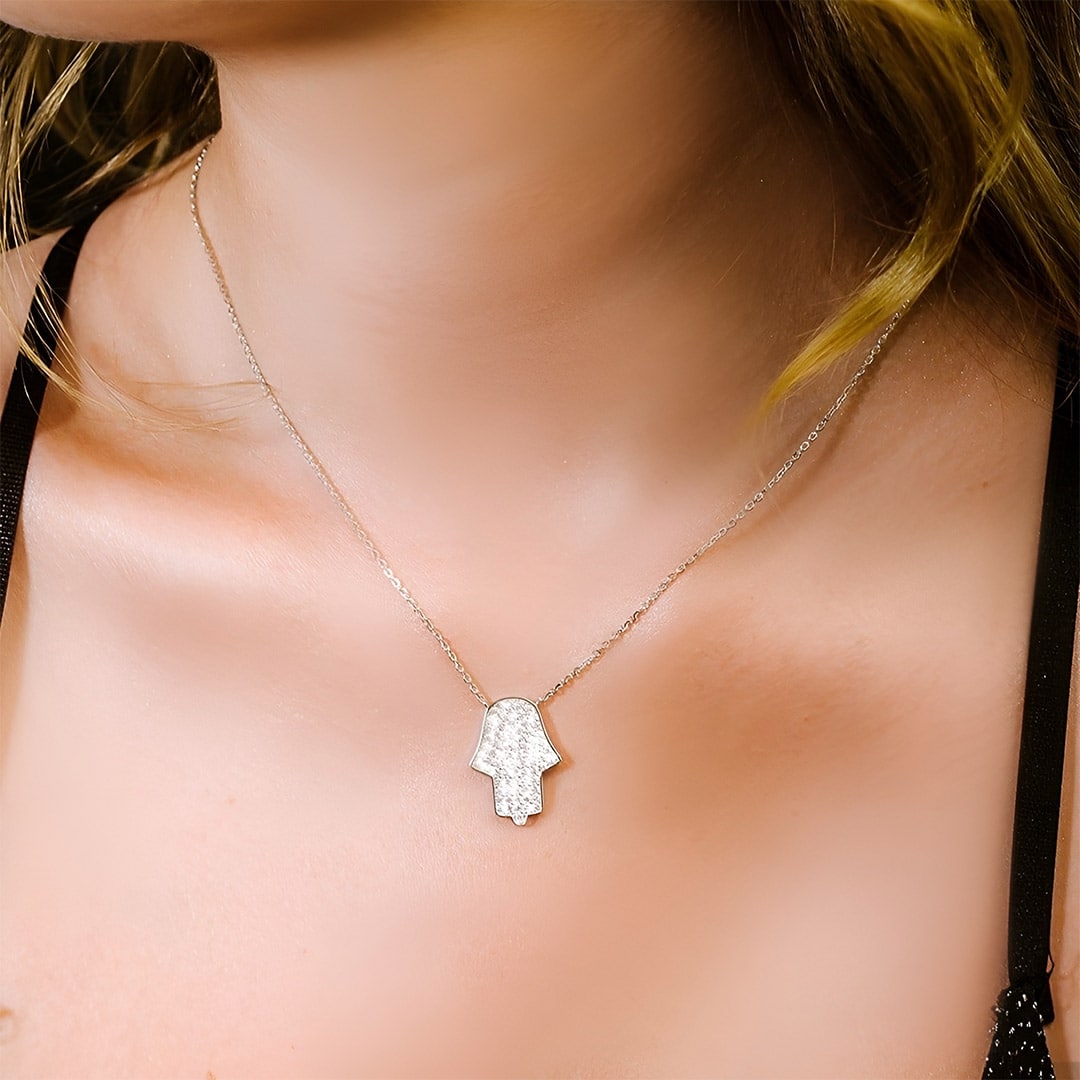 שרשרת חמסה גדולה מכסף מעוטרת בזירקונים