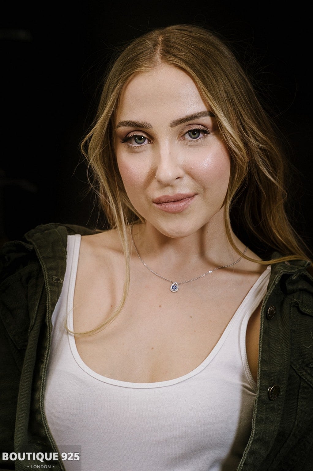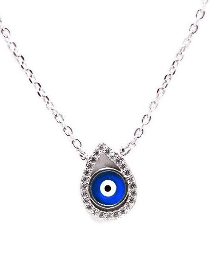 שרשרת טיפה עם עין מכסף משובצת בזירקונים