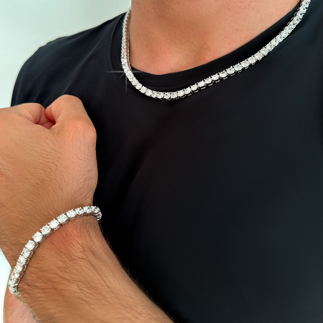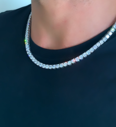 שרשרת טניס אייס לגבר משובצת זירקונים עגולים בעובי 5 מ"מ שהונחו בעבודת יד. ניתן להרטיב את השרשרת, לא משחירה.