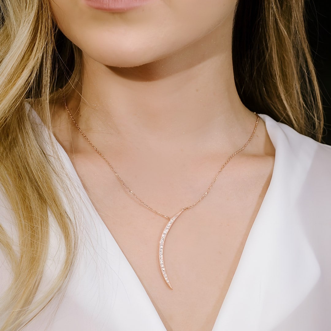 שרשרת ירח גדול רוז גולד משובצת זירקונים