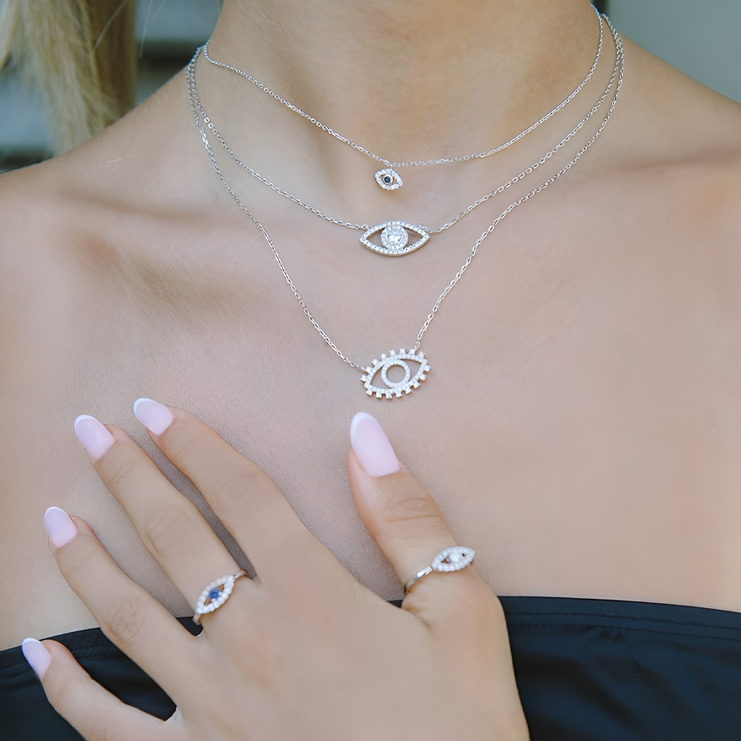 שרשרת כסף עין בינונית מעוטרת זירקונים