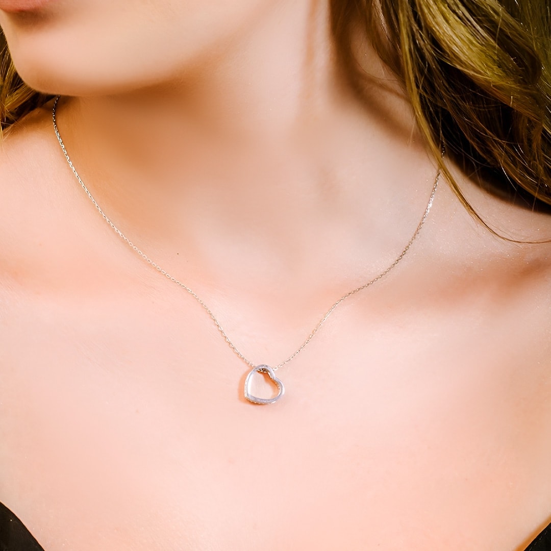 שרשרת לב חלול על הצד מכסף משובצת בזירקונים