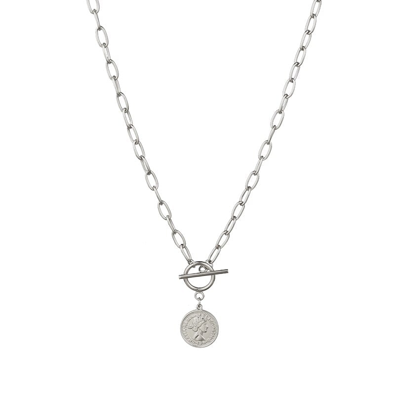 שרשרת מטבע אליזבת צבע כסף. המוצר מגיע באריזת מתנה מהודרת וממותגת! חצי שנה אחריות.