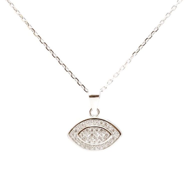 שרשרת עין מעוטרת זירקונים מכסף 925 טהור לאישה. השרשרת משובצת בזירקוני AAAA בחיתוך יהלום. מצופה ברודיום להגנה מפני התחמצנות ושריטות. המוצר מגיע באריזת מתנה מהודרת וממותגת! חצי שנה אחריות.