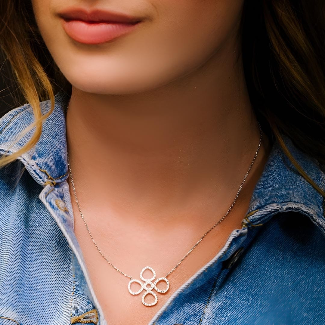 שרשרת תלתן משובצת זירקונים מכסף 925 טהור לאישה. השרשרת משובצת בזירקוני AAAA בחיתוך יהלום. מצופה ברודיום להגנה מפני התחמצנות ושריטות. המוצר מגיע באריזת מתנה מהודרת וממותגת! חצי שנה אחריות.
